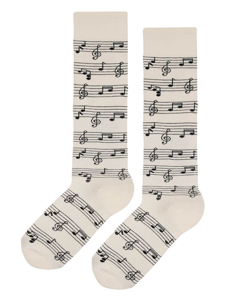 Начало Детски чорапи Чорапи детски до коляното с ноти - екрю
